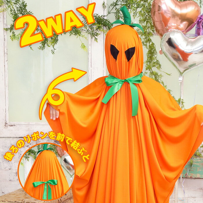 ≪Costume/Halloween≫2WAYてるてるパンプキンポンチョシーツを被ったお化けをイメージしたコスチューム。